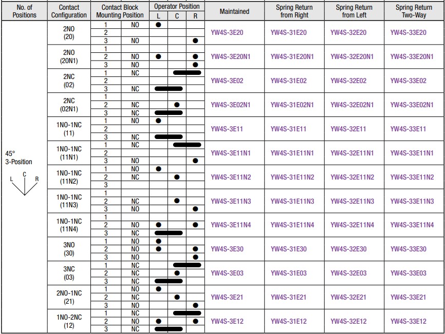 Operation | Contact | Spring Return two-way |