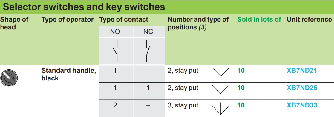 • Schneider XB7 Series Control Units - สวิทช์ซีเล็คเตอร์ 3 จังหวะ