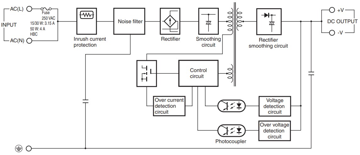 Overvoltage protection* | Yes, 120% or higher of rated output voltage power shut off (shut off the input voltage and turn on the input again) |