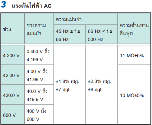 แรงดันไฟฟ้าอินพุทสูงสุด | 600V AC/DC และ 3x106 V Hz หรือน้อยกว่า (ACV/DCV) |