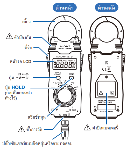 • ขั้ววัดแรงดันไฟฟ้า 600 V AC (ประเภทการวัด II) 300 V AC (ประเภทการวัด III) (แรงดันไฟฟ้าเกินชั่วครู่ที่คาดการณ์ : 4000 V) |