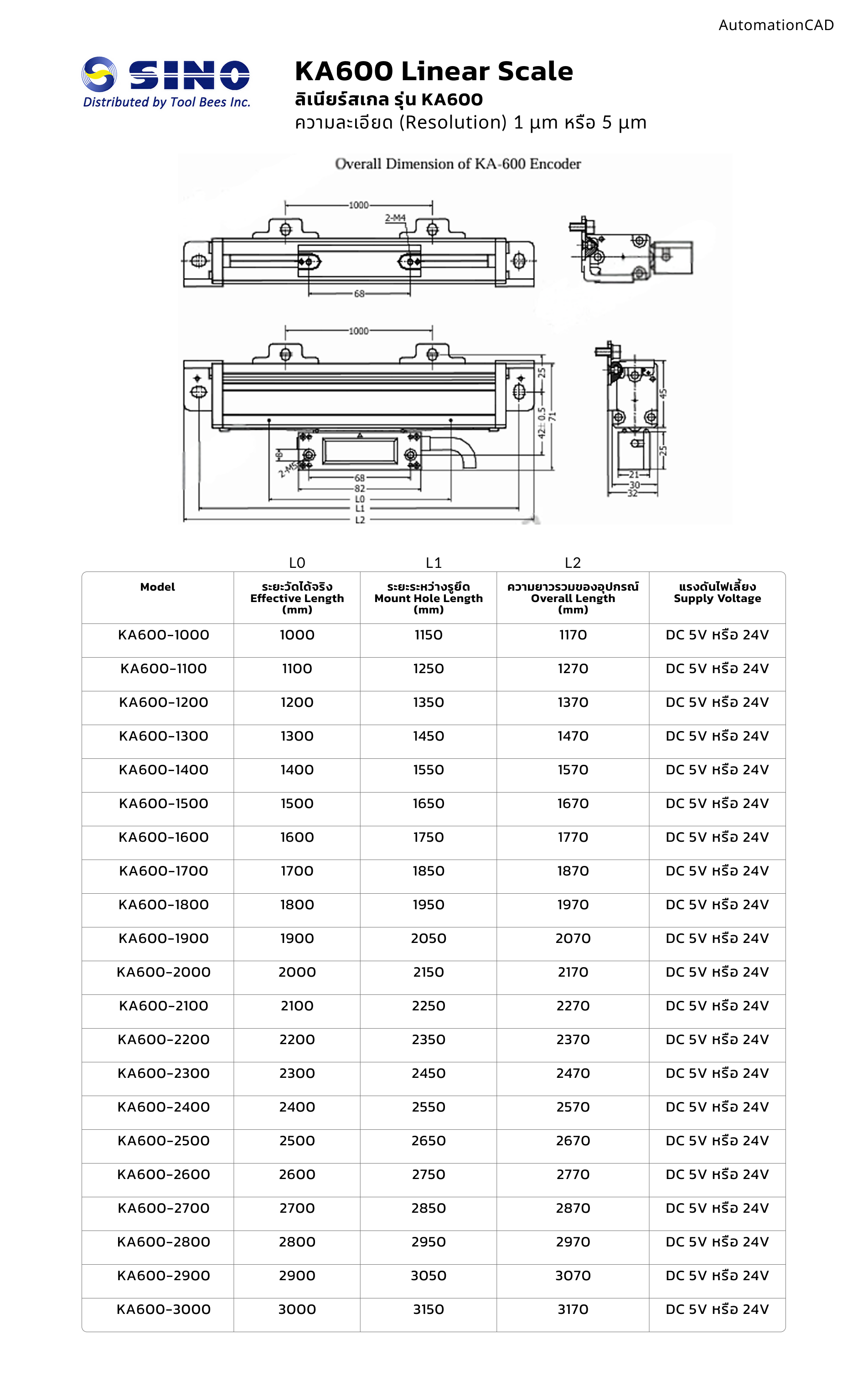 Linear Scale SINO 24V 600mm ความละเอียด 5 μm ลิเนียร์สเกล Linear Encoder