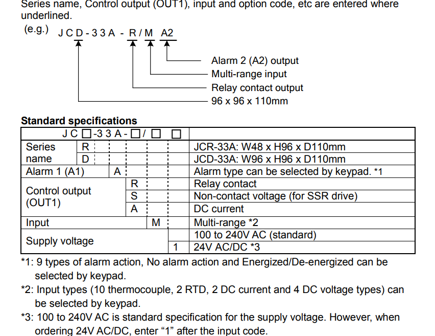 เครื่องวัดและควบคุมอุณหภูมิ รุ่น  JCR-33A-A/M